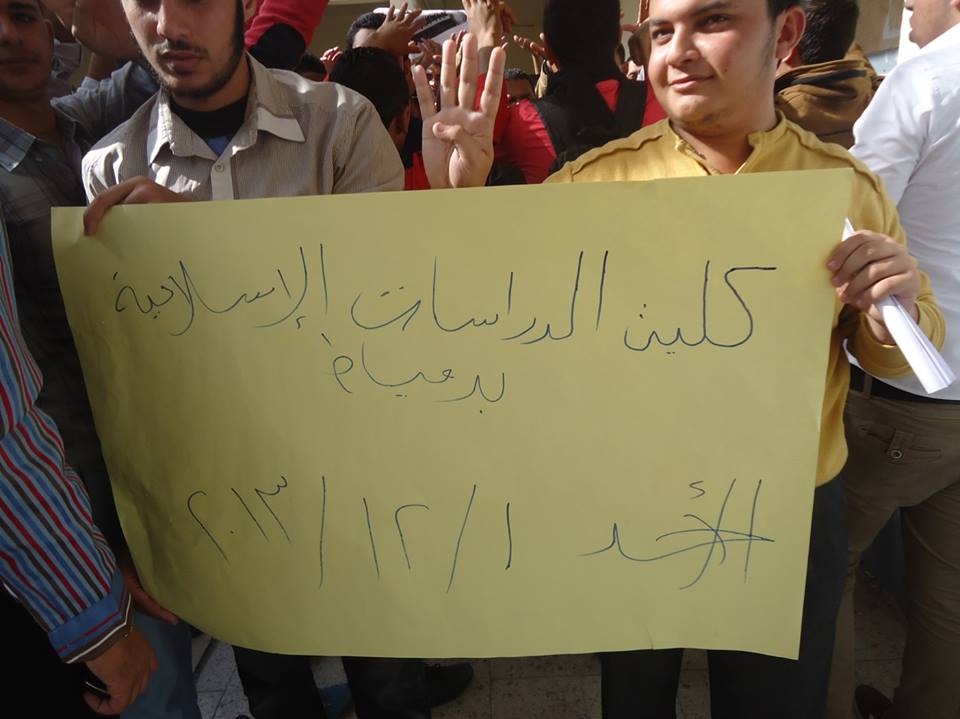 دخل اعتصام طلاب كلية الدراسات الإسلامية والعربية بجامعة الأزهر بدمياط اليوم الأحد، اسبوعه الثاني علي التوالي، تضامنا مع زملائهم في القاهرة الذين حكم عليهم بالسجن 17 عاماً، وكذلك تضامناً مع حرائر حركة "7 الصبح" اللاتي حكم عليهن بالسجن 11 عاماً.