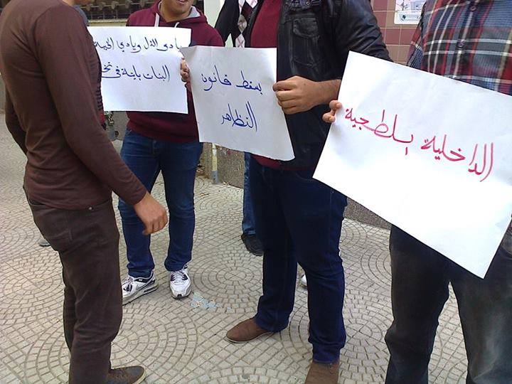 وردد المتظاهرون هتافات منها " يسقط يسقط أمن الدولة – الداخلية بلطجية – ضحكوا علينا وقالوا حرية ولسه الكلب وزير الداخليه – لسه الطالب هو الحل عمر ما نرضى تاني بالذل – ابني في السور السجن وعلي بكرة الثورة تشيل ما تخلي".