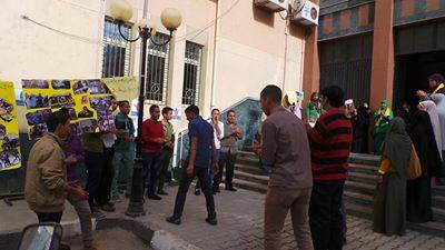 تظاهر اليوم طلاب كلية الأثار جامعة الفيوم ضد الانقلاب العسكري في مصر أمام ساحة الكلية.