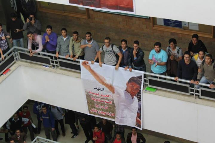 نظم طلاب الأكاديميه العربيه للعلوم والتكنولوجيا والنقل البحرى بالاسكندرية فاعليه بعنوان " عبده فين " للتعريف بشهداء الأكاديمية " أحمد عبده وسهيل عمار والزناتى والمنياوى " داخل مقر كليه الهندسه