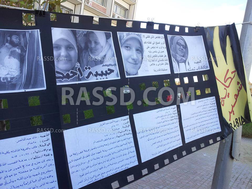 كما قام الطلاب بتوزيع بطاقات تعريفية بشهداء الجامعة في مجزرة الفض علي المشاركين في التظاهرةشهد المعرض تفاعلا كبيراً من قبل الطلبة والطالبات والذين شاركو في كتابة رسائل لأسر الشهداء علي لوحات المعرض.