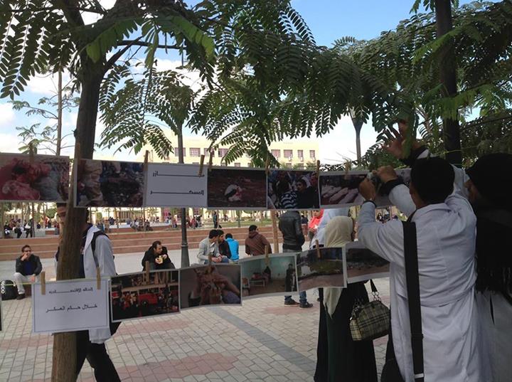 رابعة والنهضة في معرض صور ضد الانقلاب بجامعة 6 أكتوبر