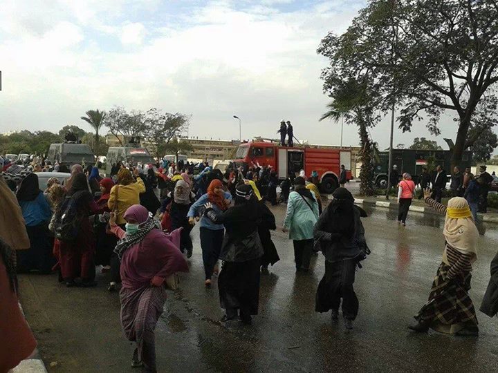 اعتراض أمن الانقلاب لطالبات الأزهر بالمياة وقنابل الصوت
