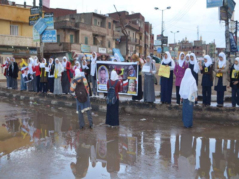 وشارك فى الوقفة طالبات الاعدادى والثانوى والأزهر وقد رفع المشاركات صور للرئيس المنتخب محمد مرسى والشهداء وشارة رابعة ورددت المشاركات "يسقط يسقط حكم العسكر" "الداخلية بلطجية" "