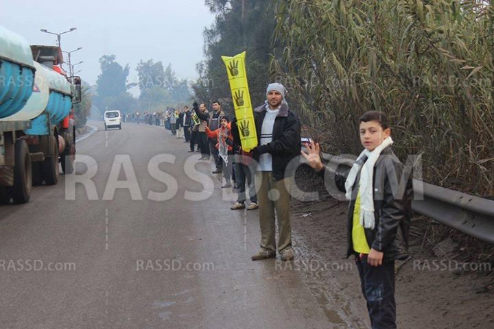 نظم التحالف الوطني لدعم الشرعية صباح اليوم سلسلة بشرية رافضة للإنقلاب بمحافظة الدقهلية حيث إمتدت هذة السلسلة من مدينة ميت غمر جنوب الدقهلية حتي وصلت إلي مدينة دكرنس شمال المحافظة.