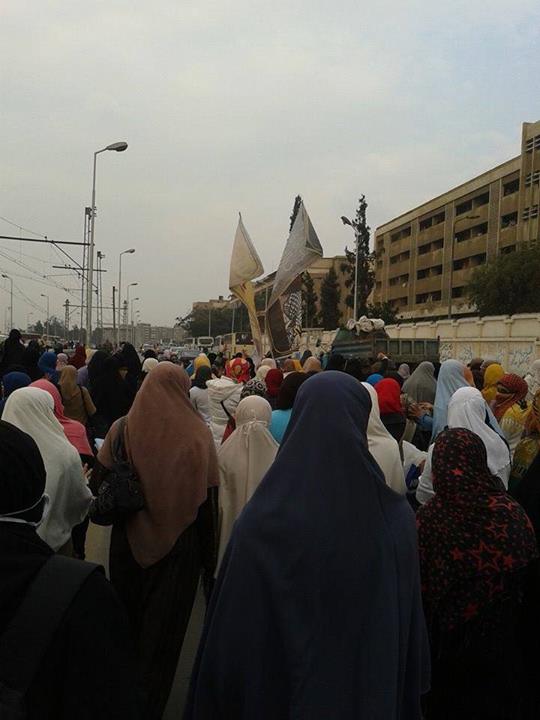 تظاهرت طالبات جامعة الأزهر بالقاهرة ظهر اليوم بشارع مصطفى النحاس أمام الجامعة ردا علي الاعتداء الأمنى علي الجامعة وإحياء لذكرى الشهيد عماد عفت شيخ الثورة.
