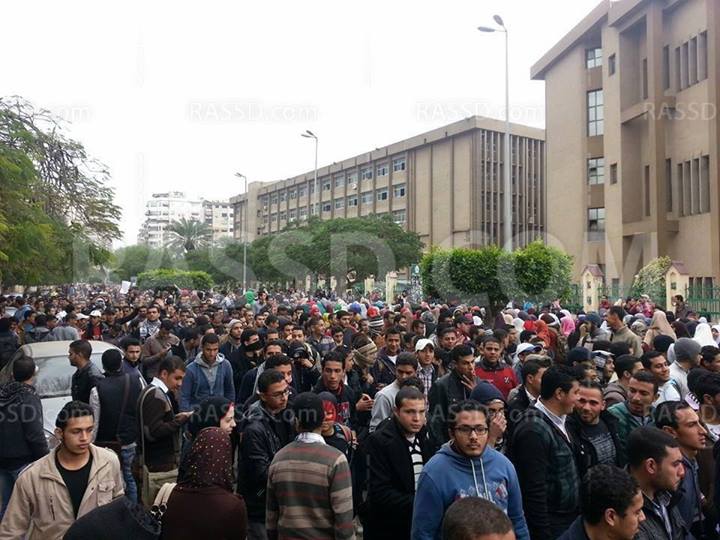 وقام  الطلاب ظهر اليوم بمسيرة جابت أنحاء الجامعة منددين باختطاف زميلاتهم المعتقلات فى سجون الانقلاب ومطالبين بالإفراج الفورى عنهم.