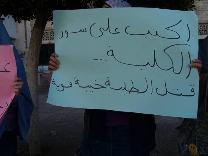 ورفع المشاركون في الفعالية شعارات رابعة العدوية و لافتات تندد بحكم العسكر ومقتل طلاب بجامعة الزهر والقاهرة وإصابة واعتقال العشرات .