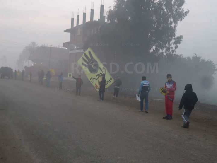 سلسلة بشرية بميت حمل ببلبيس رفضا لدستور الانقلاب