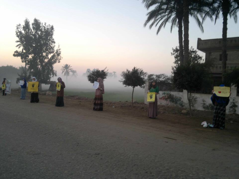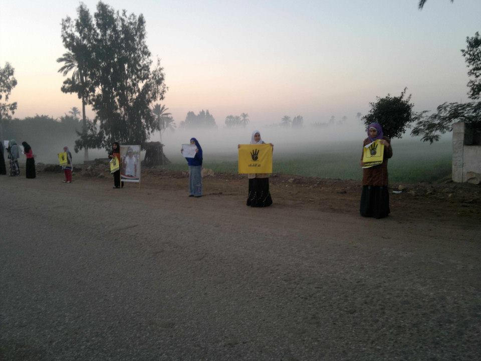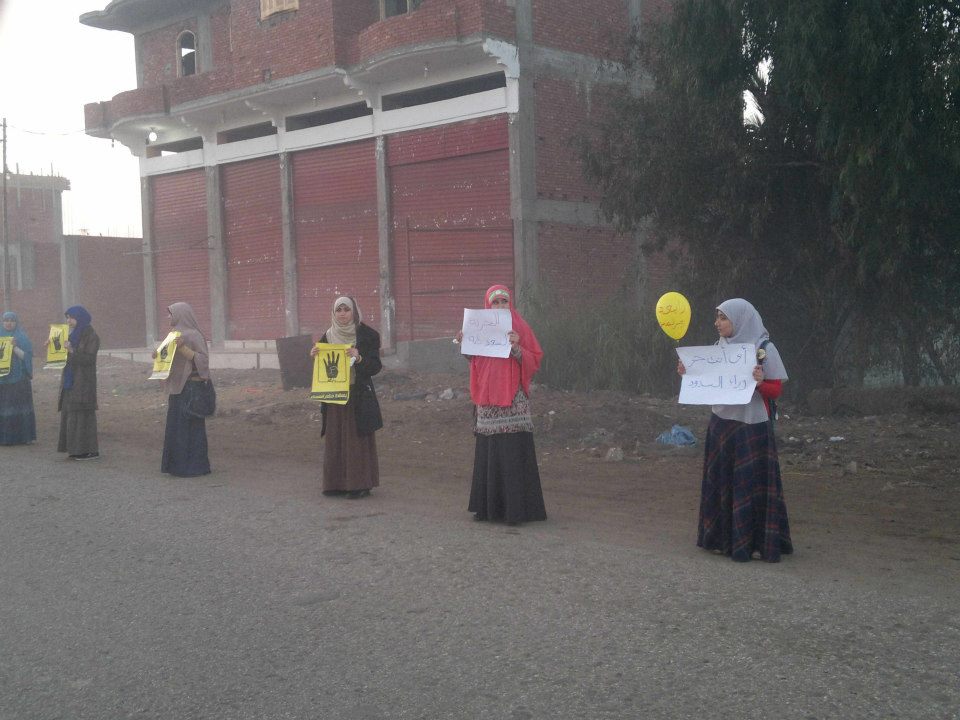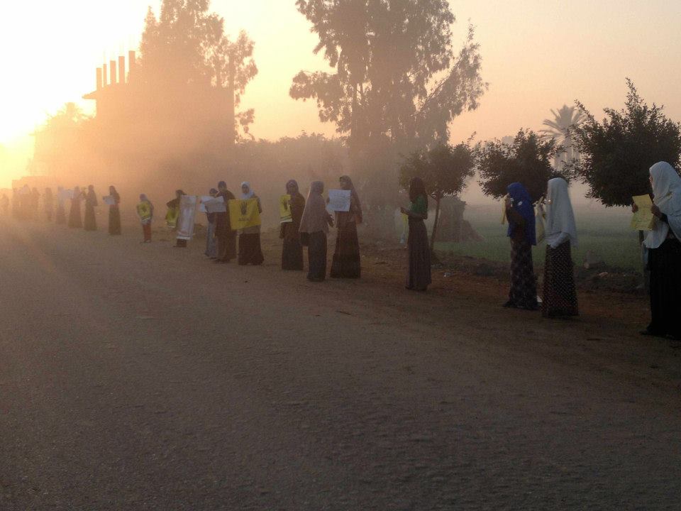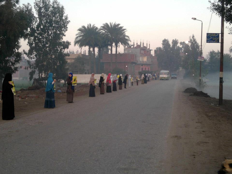 نظمت فتيات حركة 7 الصبح سلسله بشريه على الطريق الرئيسى بقرية ميت حمل بمركز بلبيس محافظة الشرقية ، تنديدا بحكم العسكر وبالدستور الانقلابي المزمع عقد الاستفتاء عليه يوم 14و15 يناير المقبل.