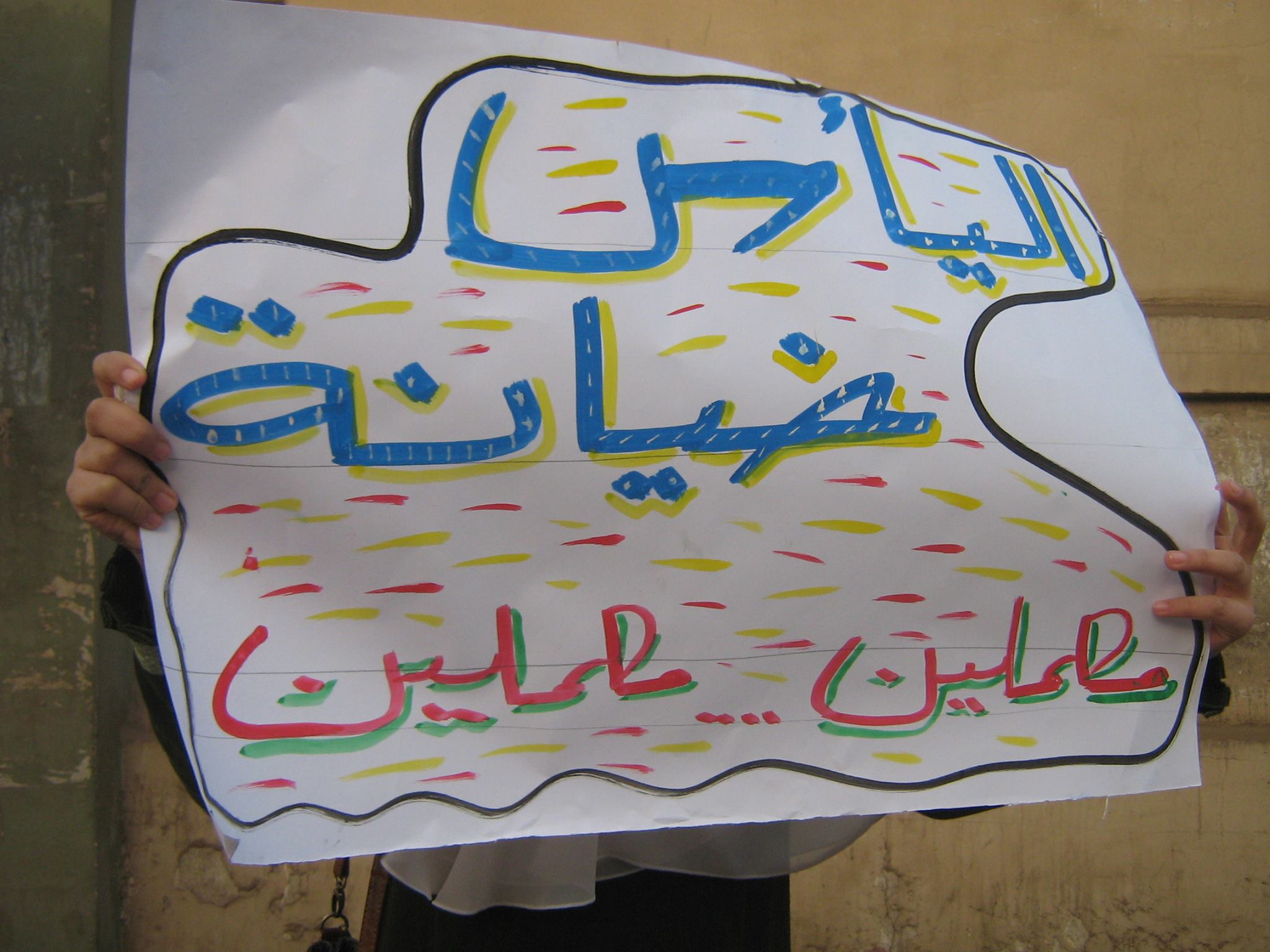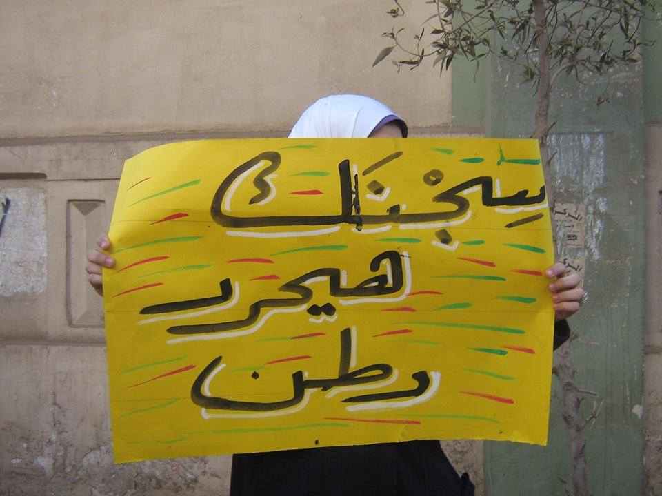 ورفعت المشاركات لافتات منددة بحكم العسكر وبداخلية الانقلاب ، وتؤكد على استمرار سلمية المتظاهرين ، واحتجاجا على اعتقال الفتيات .