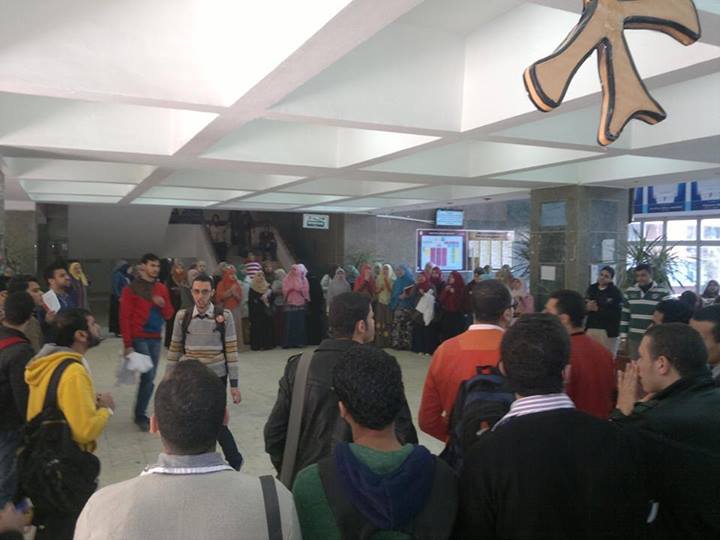 نظم طلاب طب بشبين الكوم بجامعة المنوفية وقفة داخل الكلية رفضا للانقلاب العسكرى وتنديدا بإعتقال عدد من الطلاب أمس أثناء تنظيمهم وقفة مؤيدة للشرعية أمام إدارة الجامعة وتحويل زملائهم للتحقيق لتنظيمهم عرض فريزنج لمجازر رابعة والنهضة .