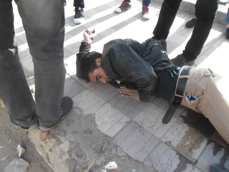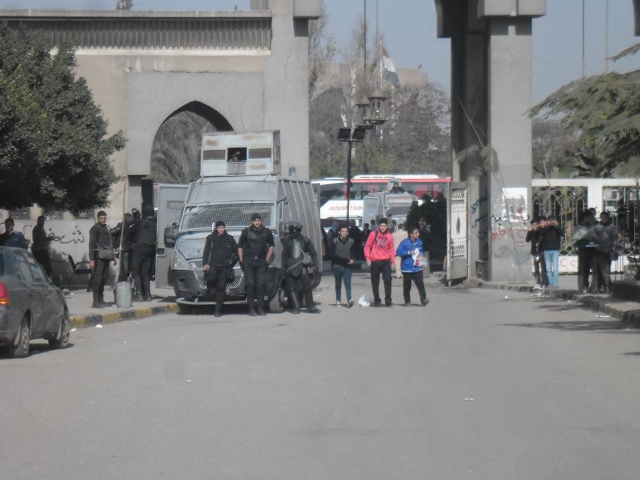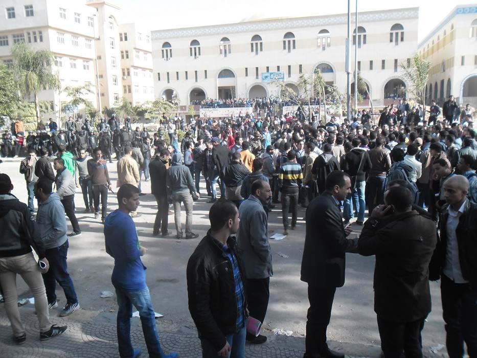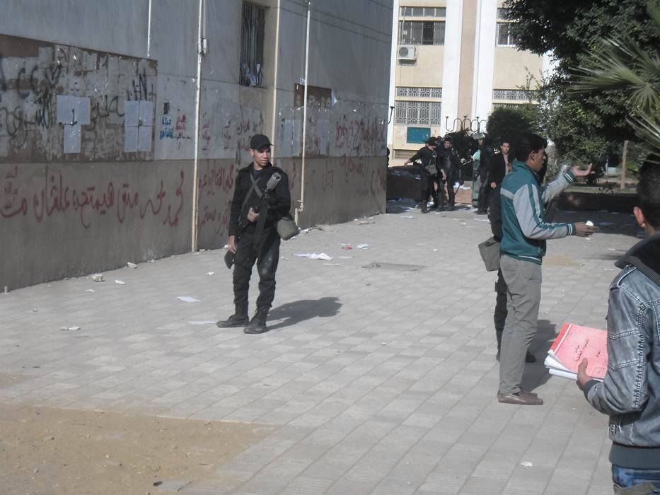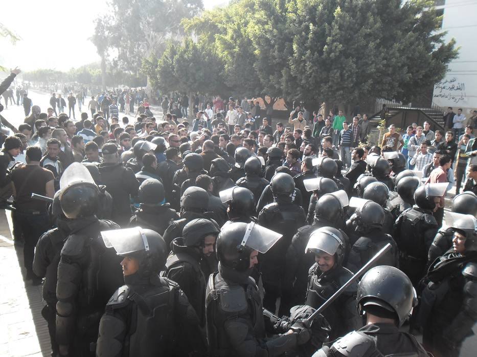 كما قامت قوات الأمن بسحل بعض الطلاب المضربين عن الامتحانات، ويذكر أن طلاب جامعة الأزهر قد أضربوا عن الامتحانات أمس فى يوم ارتقى فيه شهيدين من كلية التجارة واعتقال أكثر من 100 طالب .