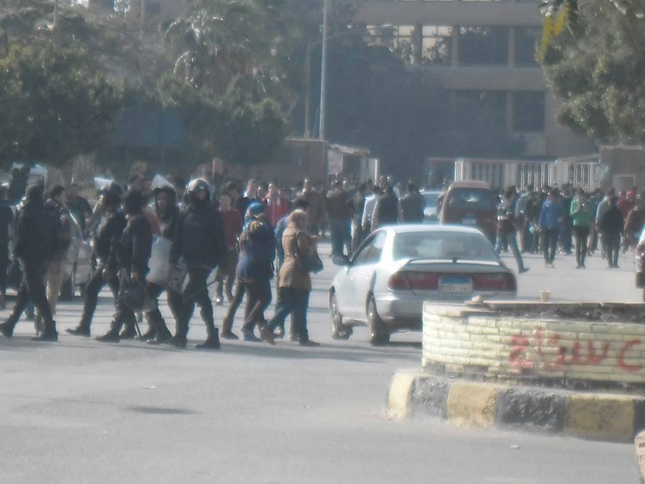 أطلقت قوات الأمن منذ قليل وابل من الخرطوش وقنابل الغاز وقامت بمحاصرة طلاب كلية التجارة بجامعة الأزهر بعد أن تجمع مئات الطلاب أمام المدرج المركزى ورددوا هتافات مناهضة لوزارة الداخلية والسيسى، وقامت قوات الأمن بتوزيع مئات الأفراد على أربع تشكيلات لمحاصرة الطلاب من جميع الجهات وسط اطلاق الغاز والخرطوش .