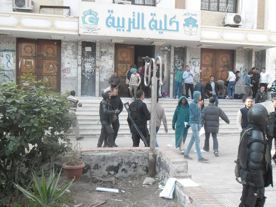 دخل عدد من طلاب الفرقة الاولى والثانية بكلية التربية جامعة الأزهر الى الامتحان صباح اليوم الأثنين  بعد أن حاولوا عمل اضراب عن الامتحان وهاجمتهم قوات الأمن ودخلوا الكلية مما اضطر الطلاب الى دخول الامتحان خوفا من بطش الأمن.