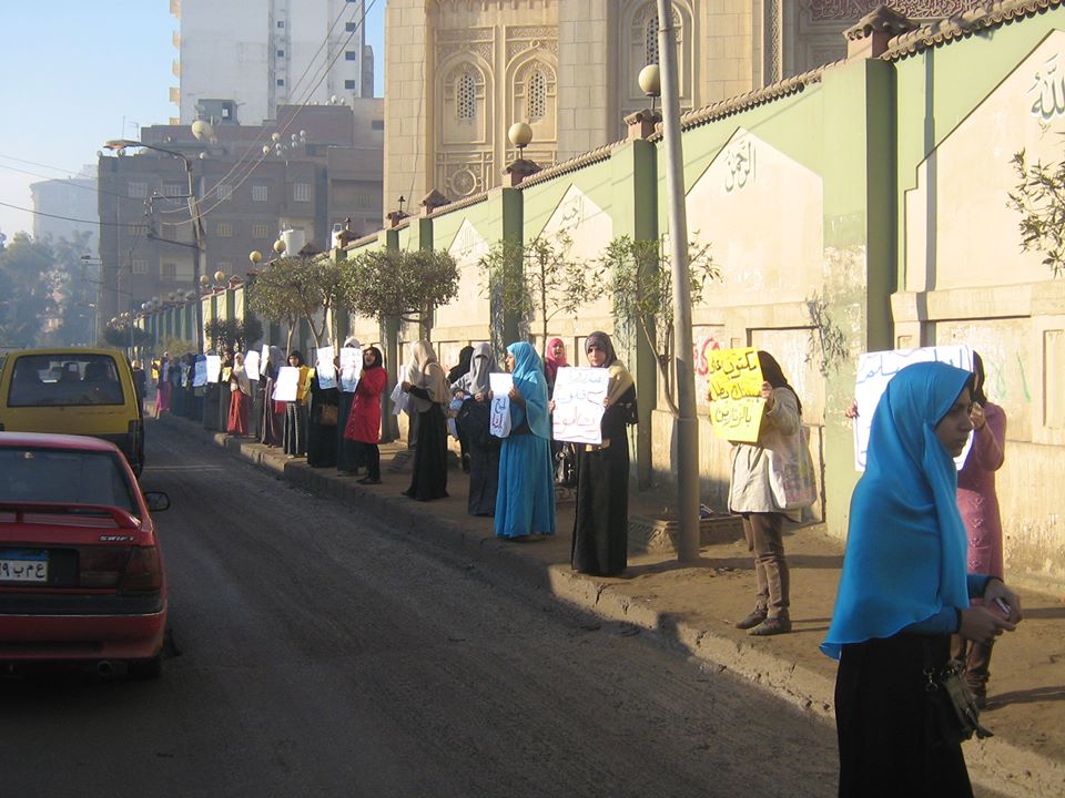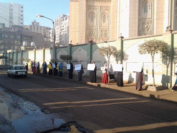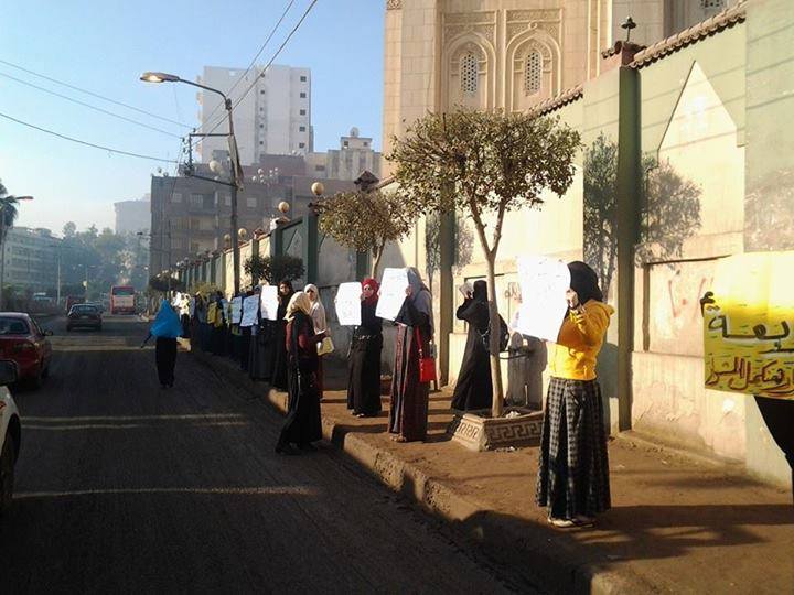 سلسلة بشرية لفتيات المحلة الكبرى رفضا للدستور الانقلابي