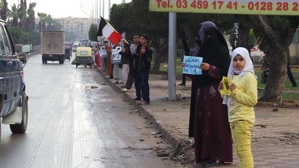 نظمت حركة 7 الصبح ببرج العرب بالإسكندرية – اليوم السبت – بالتنسيق مع التحالف الوطني لدعم الشرعيي سلسلة بشرية رافضة للانقلاب أمام بنك التنمية بمدخل المدينة.