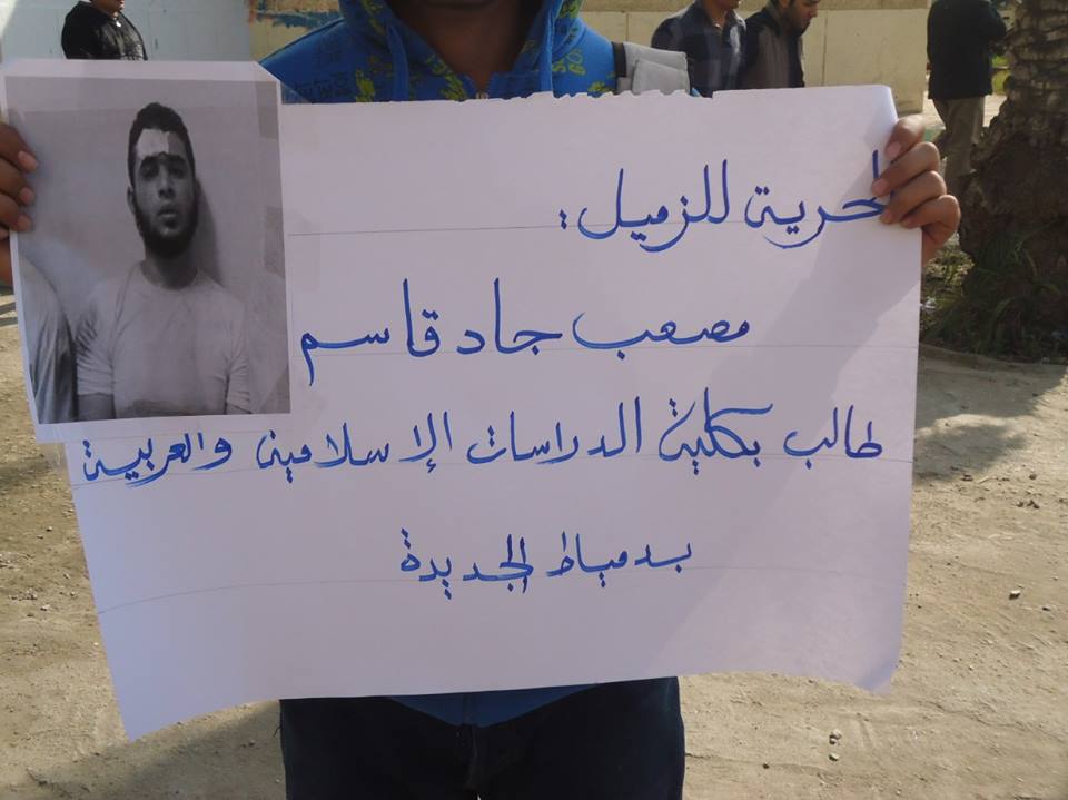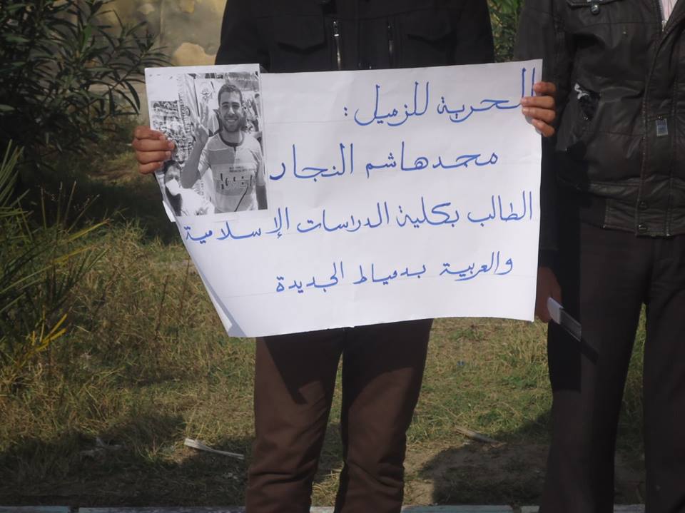 نظم طلاب كلية الدراسات الإسلامية والعربية بجامعة الأزهر بدمياط الجديدة – اليوم السبت – وقفة احتجاجية منددة بالانقلاب العسكري، وتضامنا مع زملائهم الطلاب المعتقلين، وللتنديد بمقتل زميلهم الطالب الشهيد صهيب البسطويسي.