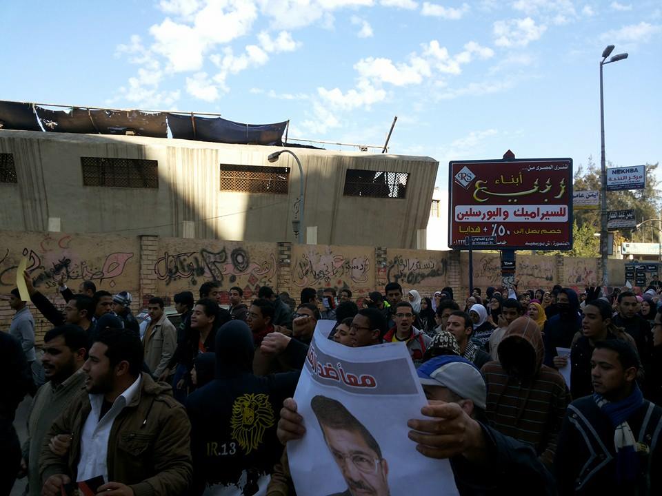 نظمت حركة شباب ضد الإنقلاب بالمنصورة مسيرة من أمام إستاد الجامعة،رفضا لمحاكمة الرئيس محمد مرسي،ومطالبة بعودة الشرعية،وتنديدًا حكم العسكر .