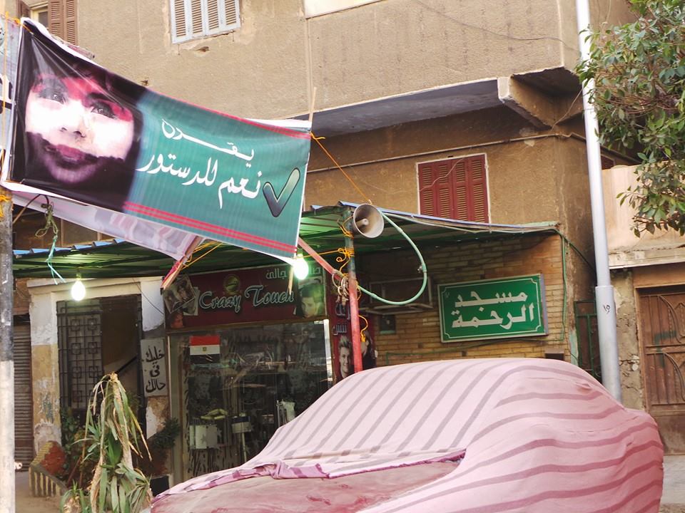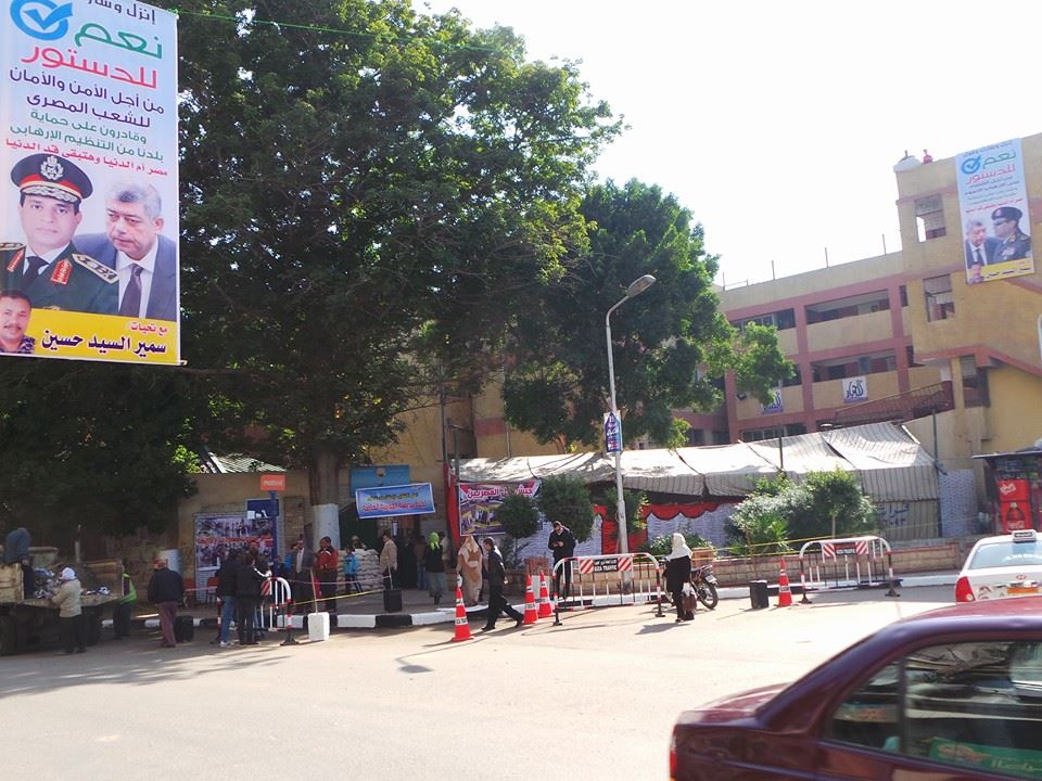 واستمرت الدعاية للتصويت بنعم للدستور فى انحاء المحافظة بالعجوزة وأوسيم والمهندسين وغيرها من الأماكن باللافتات وصور لقائد الانقلاب الفريق السيسي فى ظل تواجد شبه ضعيف من قبل الناخبين