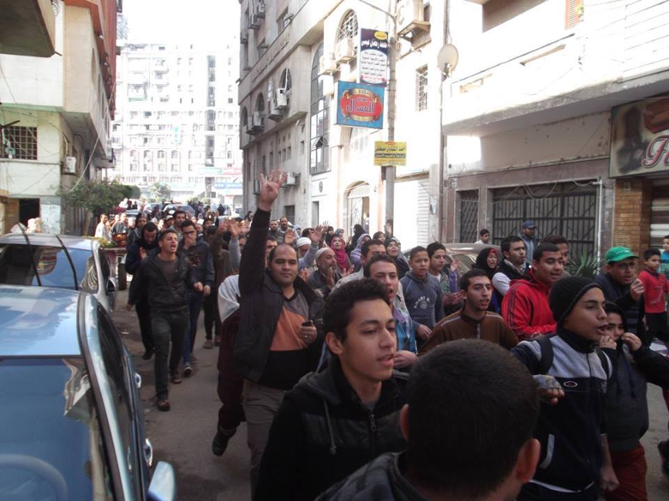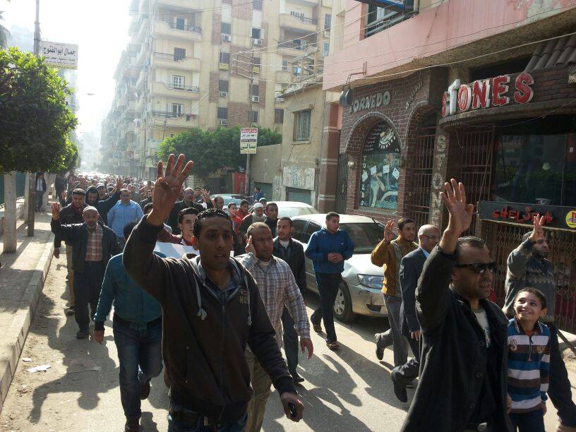 وطافت التظاهرة الشوارع المحيطة بمبنى المحافظة بتوريل وسط هتافات ،"السيسي قاتل .. دستوركم باطل" و "الشعب يريد اسقاط النظام"، ورفع المشاركون شارات رابعة العدوية ،ومطالبين بعودة الشرعية .