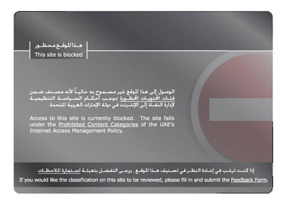 وفوجئ مستخدمو شبكة الإنترنت في الإمارات عند محاولة الوصول لموقع "إخوان أون لاين" بظهور صورة مكتوب عليها: "الوصول للموقع غير مسموح حاليًّا لأنه مصنف ضمن فئات المحتويات المحظورة، بموجب أحكام السياسة التنظيمية لإدارة النفاذ إلى الإنترنت في دولة الإمارات العربية المتحدة".