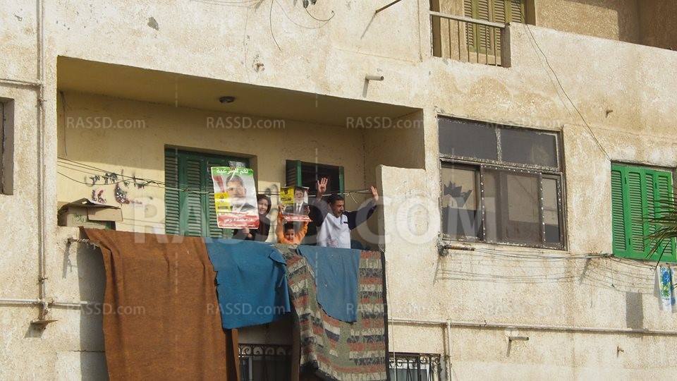 ورفع المشاركون أعلام رابعة العدوية وصور الرئيس محمد مرسي وشهدت المسيرة تواجد لأعمار مختلفة من المتظاهرين ورددوا هتافات مناهضه للانقلاب "اوعاك تنسى وخليك فاكر .. اللى قتلوا اخواتنا عساكر ، ارفع رابعه فى كل مكان … مش هنرجع زى زمان ".
