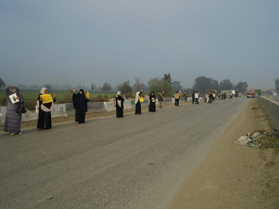 نظم المئات من أنصار الشرعية بمدينة كفر صقر بمحافظة الشرقية سلسلة بشرية صباحية تلبية لدعوة التحالف الوطنى لدعم الشرعية ورفض...