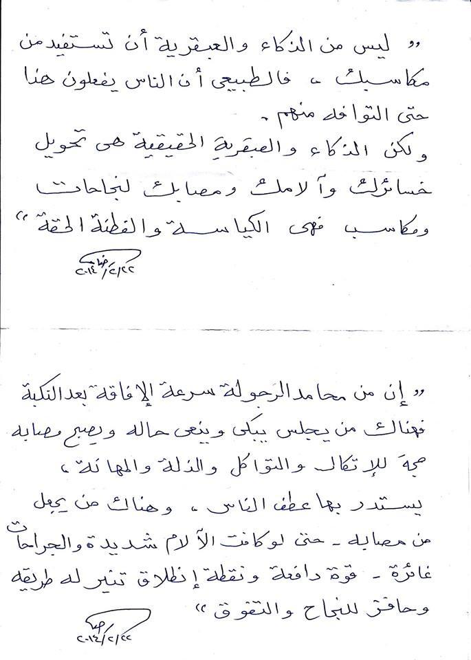 وجه "رضا صبري"  ابن مركز "دكرنس" بمحافظة الدقهلية و  أحد معتقلي "فض رابعة "من قبل قوات أمن الإنقلاب ,  رسالة من محبسه إلى جموع ثوار مصر , طالبهم فيها بالثبات رغم ما نلاقية من شده , ووجههم إلى تحويل مصابهم الجلل إلى نقطة إنطلاق وحافز للإنتصار .