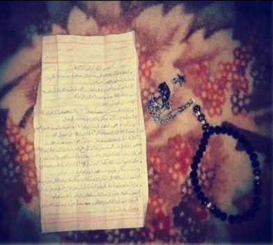 نص رسالة أحمد من محبسه والذي أرسل معها مسبحة لأخته ..