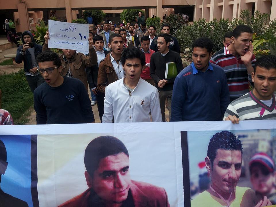 نظمت حركة " طلاب ضد الانقلاب " بهندسة منوف بمحافظة المنوفية – اليوم الاثنين – وقفة احتجاجية ، أمام ساحة الكلية ، هاتفين ضد حكم العسكر و آلته القمعية.