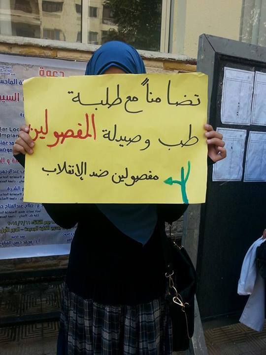 كما نظم طلاب كلية طب الأسنان بالجامعة وقفة احتجاجية بداخل الكلية تبعتها تظاهرة بالساحة للمطالبة بإسقاط حكم العسكر والإفراج عن طلبة الكلية المعتقلين وطرد الحرس الجامعي.