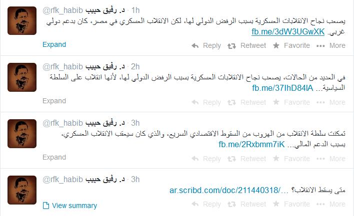 قدم د. رفيق حبيب – الباحث والمحلل السياسي والمفكر القبطى المعروف – دراسة جديدة حول الانقلاب في مصر تحت عنوان :"متى يسقط الانقلاب؟ معالم لحظة الحسم".