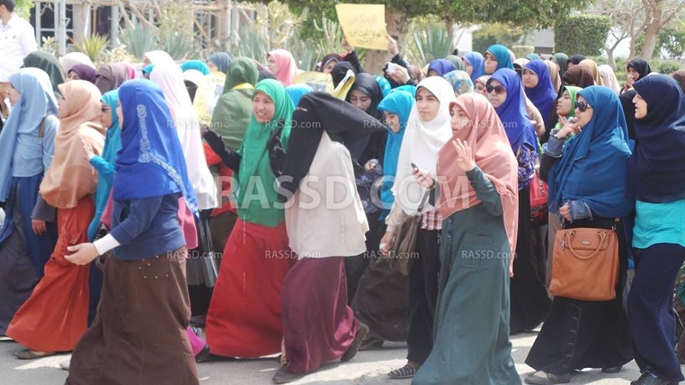 هذا وقد رفعت الطالبات لآفتات منددة باستمرار اعتقال الطالبات وبالانتهاكات التي يمارسها الأمن فى سجون الانقلاب ، وقد طالبن بالافراج عن جميع المعتقلات وبخاصة طالبات الأزهر والمنصورة.