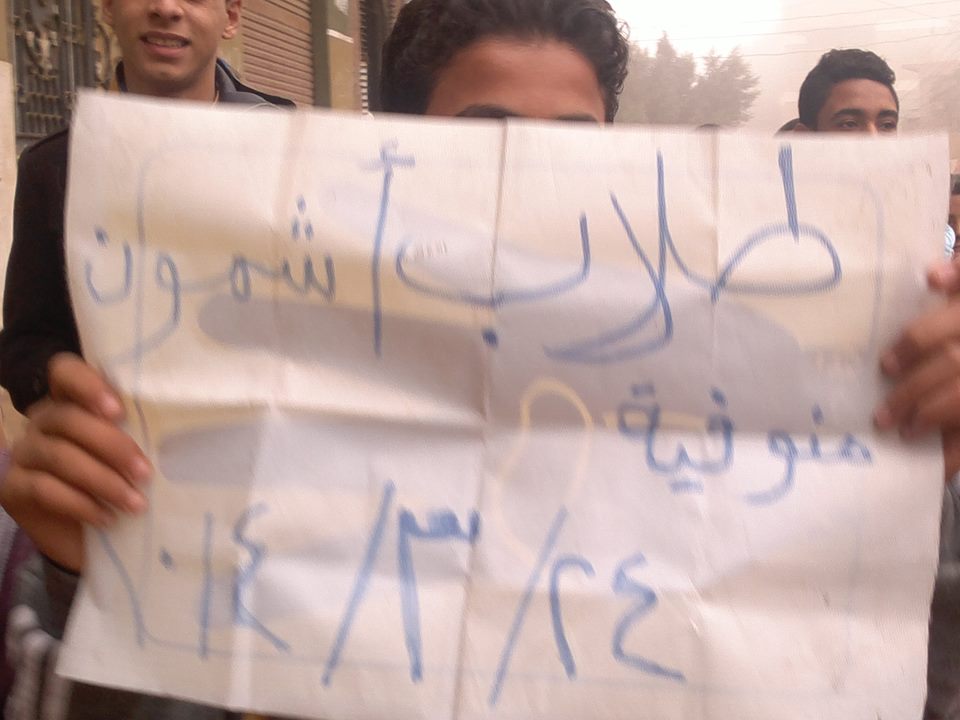 نظم طلاب المعاهد الأزهرية بقريتي الكوادي ، ومنيل عروس التابعتين لمركز أشمون بمحافظة المنوفية مسيرة طلابية مناهضة للإنقلاب العسكري ، تنديدًا بالممارسات القمعية من قبل قوات داخلية الانقلاب  تجاه الطلبة ،وتضامنا مع زملائهم من طلاب الجامعات.