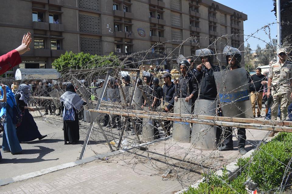 وكانت مظاهرة حاشدة للطالبات قد خرجت  – قبل ظهر اليوم – من أمام كافتريا الجامعة وجابت ساحة الحرم الجامعي حاملين شارات رابعة العدوية ، وصورًا للطالبات المعتقلات ولافتات منددة باستمرار حبسهن، وأخرى تدين أحكام الإعدام بحق رافضي الانقلاب العسكري في المنيا .