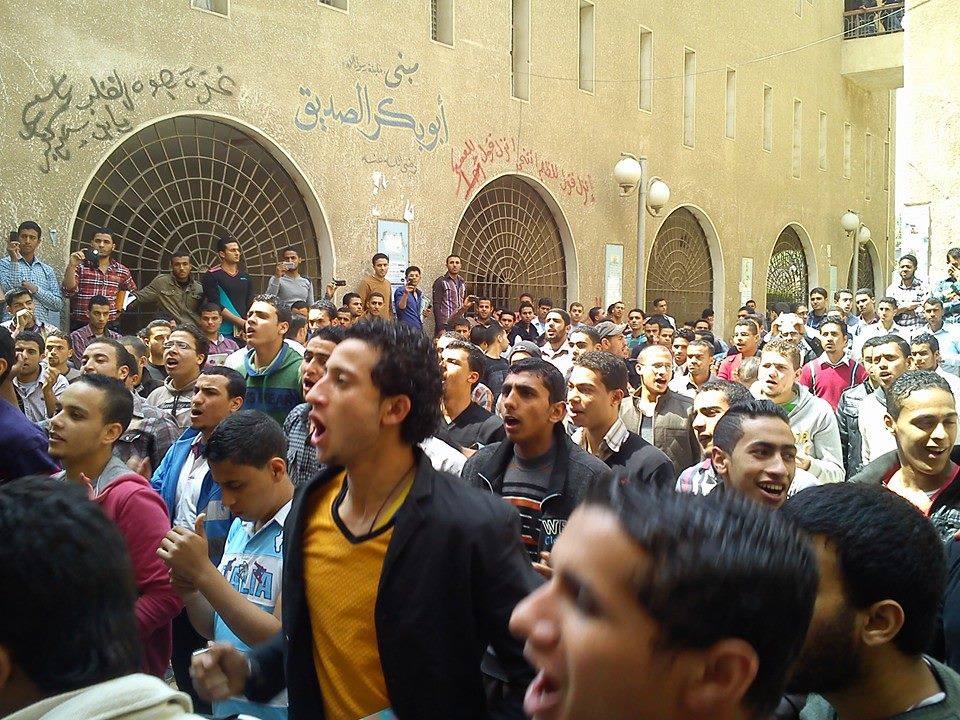 وطالب المتظاهرون بالإفراج عن الطلاب المعتقلين والقصاص للشهداء، وضروة محاسبة قادة الانقلاب وكل مسؤول عن دماء الشهداء فى الحرم الجامعي .
