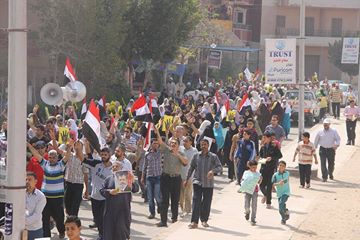 وانطلقت المسيرة من أمام المزلقان الجديد لتجوب شوارع وأحياء المدينة رافعين صور الدكتور محمد مرسى أول رئيس مدنى منتخب للبلاد وصور الشهداء والمعتقلين ولافتات تندد بسوء الأحوال الاقتصادية وفشل الحكومة في التعامل مع الأزمات التي تتفاقم يوما بعد الآخر مع استمرار انقطاع الكهرباء ونقص المواد البترولية وارتفاع الأسعار.