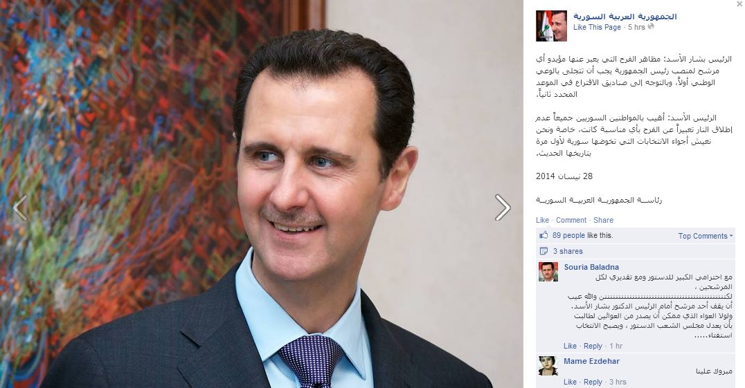 طالب الرئيس السوري المتهم بجرائم حرب بشار الأسد، من انصاره عدم التعبير عن فرحتهم بترشحة بإطلاق النار مؤكدا أن التعبير عن الفرحة سيكون بصناديق الانتخابات -حسب زعمه -.