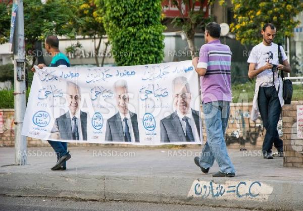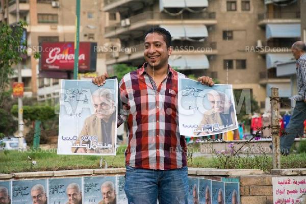 كما قام الشباب خلال الوقفة التي نظمتها الحملة الدعائية لحمدين بحملة ملصقات لصوره على الجدران بالشارع ومحاولة كسب تأييد المارة بشارع عباس العقاد بمدينة نصر مساء أمس رافعين لافتات مرشحهم وسط تفاعل واهتمام ضئيل من المارة بالانتخابات التي دعت إليها سلطات الانقلاب.