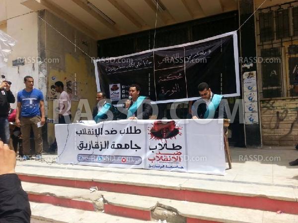 كان طلاب ضد الانقلاب قد أعلنوا عن محاكمة رمزية اليوم للسيسى على جرائمه بحق مصر والمصريين بساحة الحرية بكلية الهندسة وسط مشاركة واسعة من طلاب وطالبات جامعة الزقازيق.