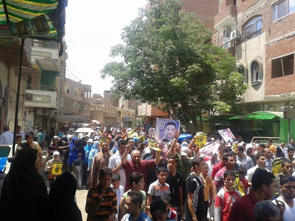 وفي مركز ناصر بشمال المحافظة خرجت ثلاث مسيرات عملاقة ببندر ناصر وقري بهبشين وبني عدي ،عقب صلاة الجمعة ،رفع المشاركون خلالها شارات رابعة وسط مشاركة نسائية حاشدة.
