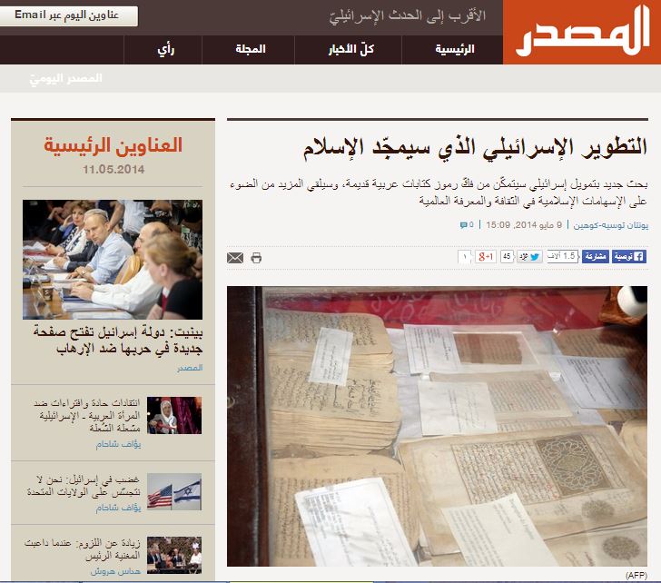 وقالت شبكة المصدر التابعة للخارجية "الإسرائيلية": "هناك أمل الآن بأن يساعد المشروع الجديد في الكشف عن إسهامات الإمبراطورية الإسلامية للمعرفة الإنسانية القائمة اليوم".