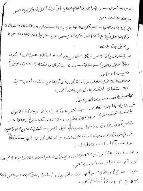 ومعلومة الإضراب وعملي في قناة الجزيرة ذكرها لي نائب مأمور سن الاستقبال العقيد عادل عبد الصمد أحمد؛ كلهم يزعم حب مصر ولا أحد يحبها.
