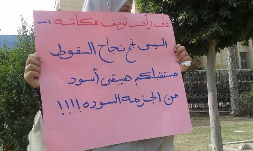 نظمت طالبات جامعة الأزهر فرع تفهنا الأشراف سلسة طلابية، صباح اليوم السبت، قبل دخولهن للامتحان، معلنات عن تضامنهم مع المعتقلين السياسين في إضرابهم، ومطالبات بالإفراج عنهم. وأكدت الطالبات رفضهن لما سموه بالمسرحية الهزلية، مرددات هتافات منددة بحكم العسكر والانقلاب العسكرى، وطالبن أيضا بعودة الرئيس محمد مرسي.