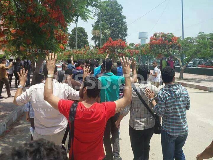 نظمت حركة "طلاب ضد الانقلاب" بجامعة الزقازيق مسيرة مفاجئة من أمام البوابة الرئيسية للجامعة، ظهر اليوم الخميس، رفضا لنتائج انتخابات العسكر والتى أسفرت عن فوز قائد الانقلاب العسكري، عبد الفتاح السيسي بالرئاسة.