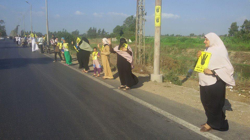 كما نظمت حركة "شباب ضد الانقلاب"، بالاشتراك مع "جنيات ثورية" سلسلة بشرية، عصر الجمعة، على طريق "المنصورة – أجا"، طالب المشاركون فيها بمحاكمة قادة الانقلاب، والقصاص لدماء الشهداء.