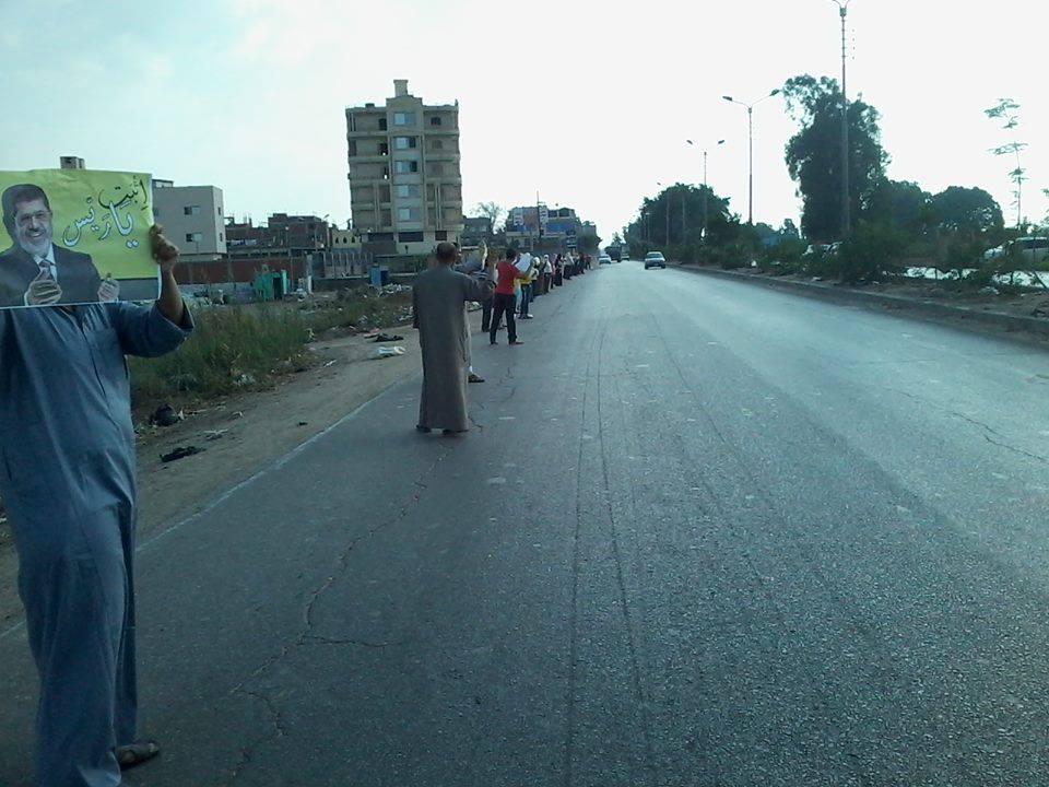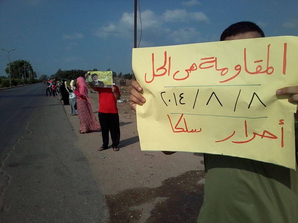 كما نظم رفضوا حكم العسكر، في "المنصورة"، سلسلة بشرية على طريق"محلة دمنة – المنصورة"، رفع المشاركون خلالها صور الرئيس الشرعي الدكتور "محمد مرسي"، وأعلام "مصر"، رافعين لافتات تندد بالموقف المصري المتخاذل تجاه ما يحدث بـ"غزة".