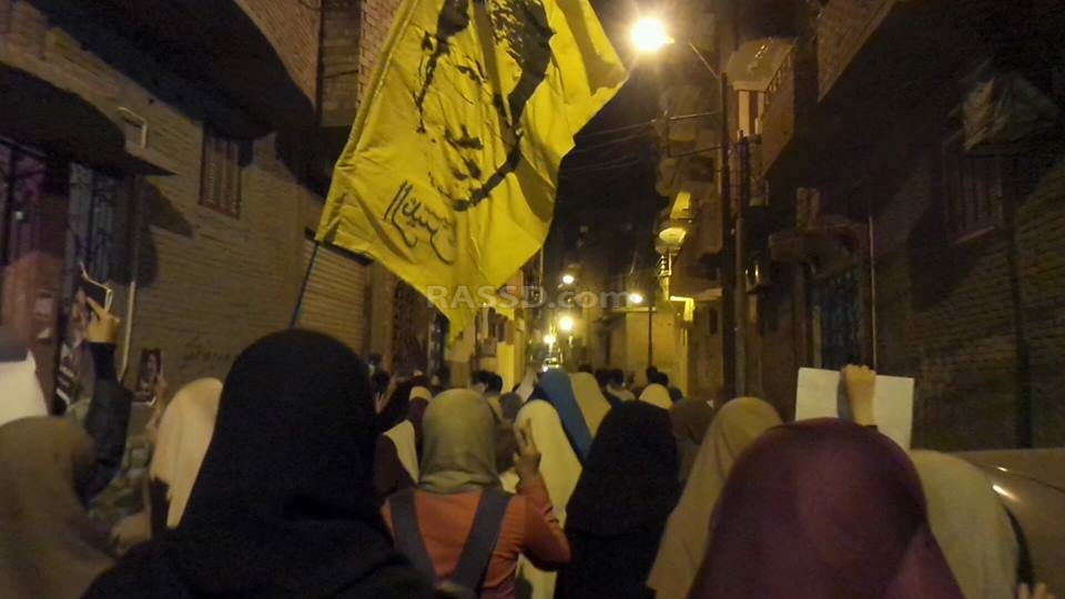 خرج رافضو حكم العسكر في منشية رضوان شمالي الجيزة، في مسيرة ليلية انطلقت من أمام مسجد دعوة الحق، نددوا فيها بالحملات الأمنية التي تشنها داخلية الانقلاب بحق المعارضين، في ما لاقت تعاطف الأهالي وتفاعلهم، حيث لوحوا بشارات رابعة للمشاركين.