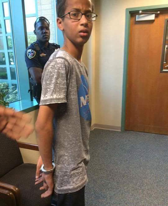 “بعد أقل من يوم من انتشار خبر اعتقال الصبي المسلم البالغ من العمر 14 عاما، بسبب الظن بأن ساعة منبه صنعها في البيت هي قنبلة، بدأت تعابير التأييد تتدفق من مجتمعه، ومن أنحاء البلاد، وحتى من البيت الأبيض”.